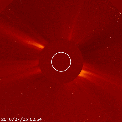 Es muy grande la explosión, para tener una idea compare el circulo en BLANCO que representa el tamaño original del SOL, esta bloqueado el sol para poder apreciar mejor la luz en contraste de la erupción, vea la gran distancia que recorre fuera del sol el destello de esta explosión.
